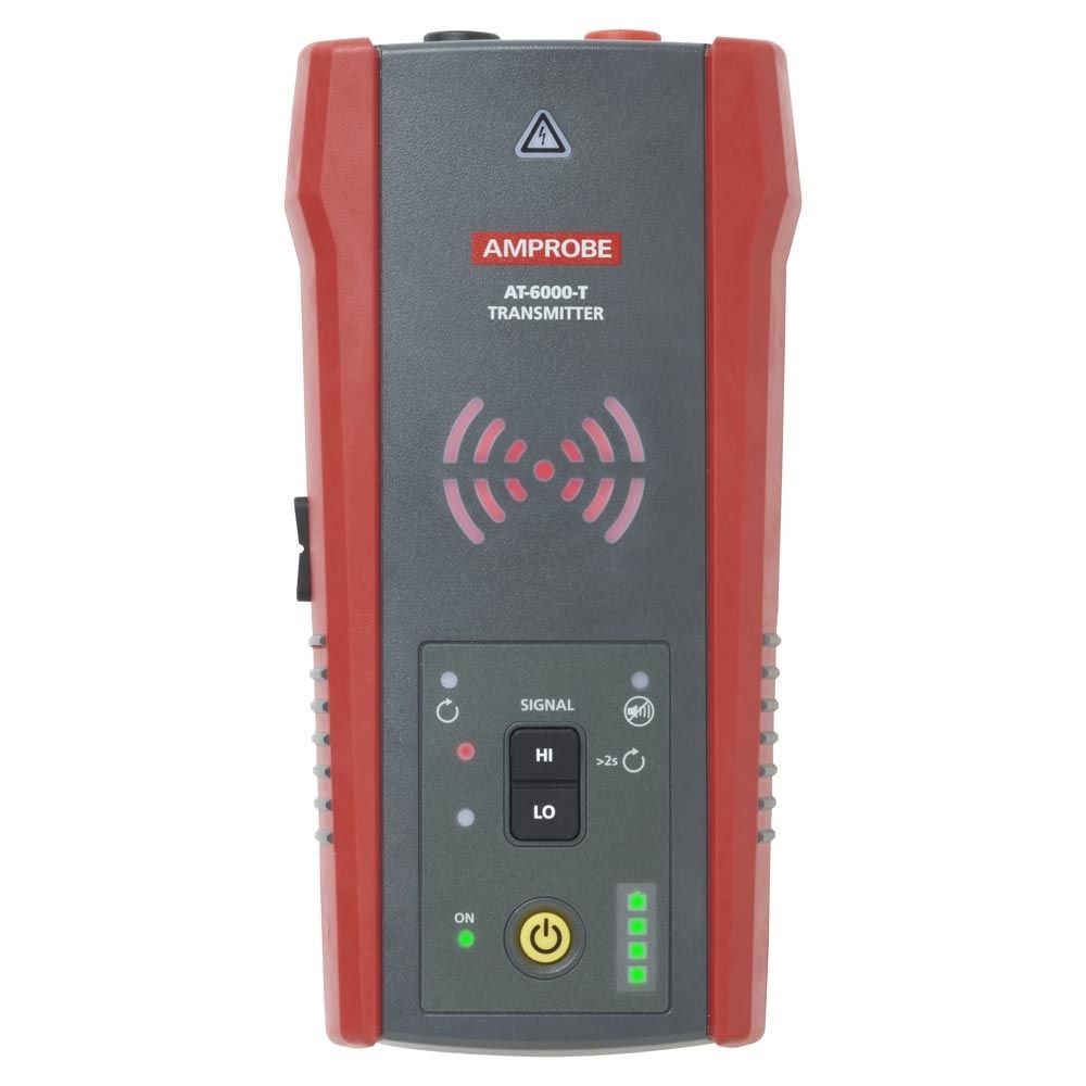 The AT-6000-T Transmitter works on Energized and De-energized circuits up to 600 V AC/DC in Category I through Category III electrical environments and features high signal, low signal, and loop modes. The Breaker Identification feature eliminates confusion of multiple false positives, common with older technology tracing tools, by identifying the one correct breaker or fuse with the highest recorded signal.