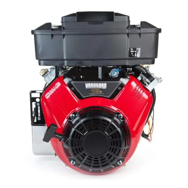 Briggs Stratton 356447-0596-F1 horizontal Vanguard is 570cc and puts out 18.0 HP (maximum horsepower). This V-Twin Vanguard has a 1″ x 3″ crankshaft with a 1/4″ keyway.