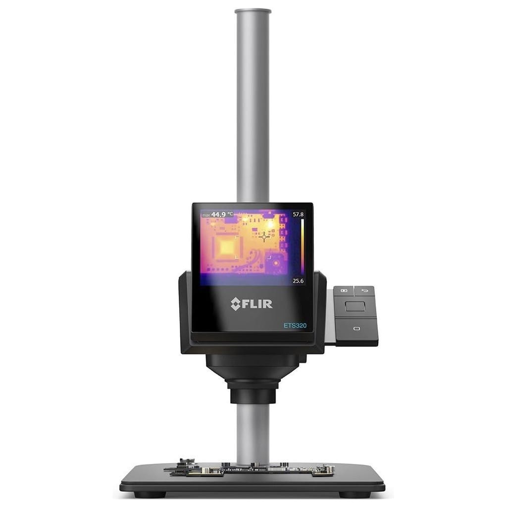 FLIR ETS320 Thermal Imaging Solution is suitable for electronic board and device evaluation. The ETS320 kit includes a camera, pole mount, stand, power supply, FLIR tools and software, and USB cable. This device helps to collect accurate and reliable data and analyze it quickly. The ETS320 features a vibrant 3″ LCD display, 320 x 240 infrared resolution, and 45° Field of View (FOV). This thermal imager can detect temperature shifts smaller than 0.06°C and offers -20°C to 250°C wide object temperature range. The ETS320 offers ±3% measurement accuracy and records standard radiometric JPEGs. This thermal imager includes a Li-ion battery with 4 hours of battery operating time at ambient temperature